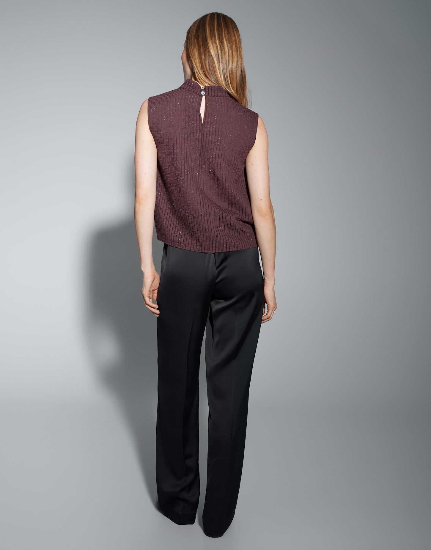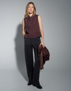 De Blousetop Fagic is een elegante top met een subtiele glans en een verfijnde uitstraling. De semi-transparante stof met burnout strepen geeft een chic, feestelijk effect, terwijl de watervalkraag zorgt voor een vrouwelijke touch. Dankzij de losse pasvorm valt de top soepel en comfortabel. Perfect te dragen onder een blazer voor een stijlvolle avondlook of een elegant diner.