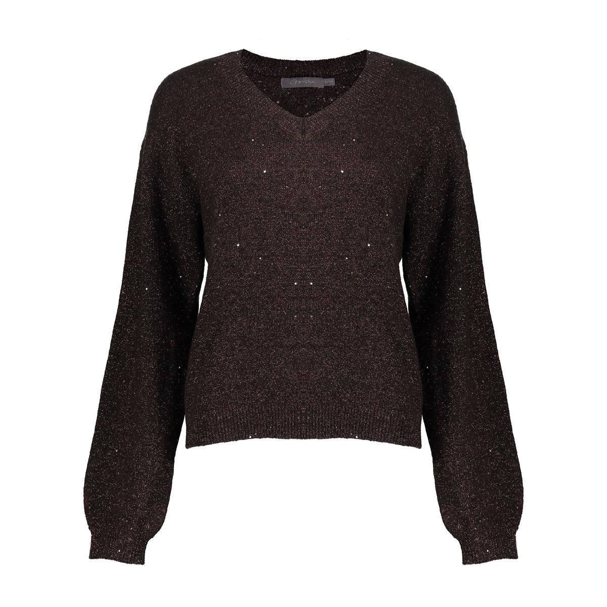 De Trui met V-hals en Glitter is een stijlvol basisstuk met een feestelijke twist. De aangesloten pasvorm en V-hals zorgen voor een elegante uitstraling, terwijl de subtiele glittertjes de trui net dat beetje extra laten schitteren. Met lange mouwen en cuffs draagt hij comfortabel en is hij makkelijk te combineren – van casual met een jeans tot chic met een rok of pantalon. Het model is 179 cm lang en draagt maat S/36.