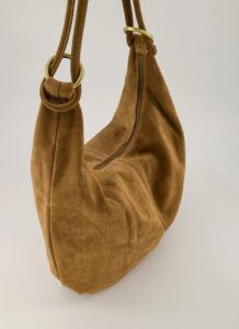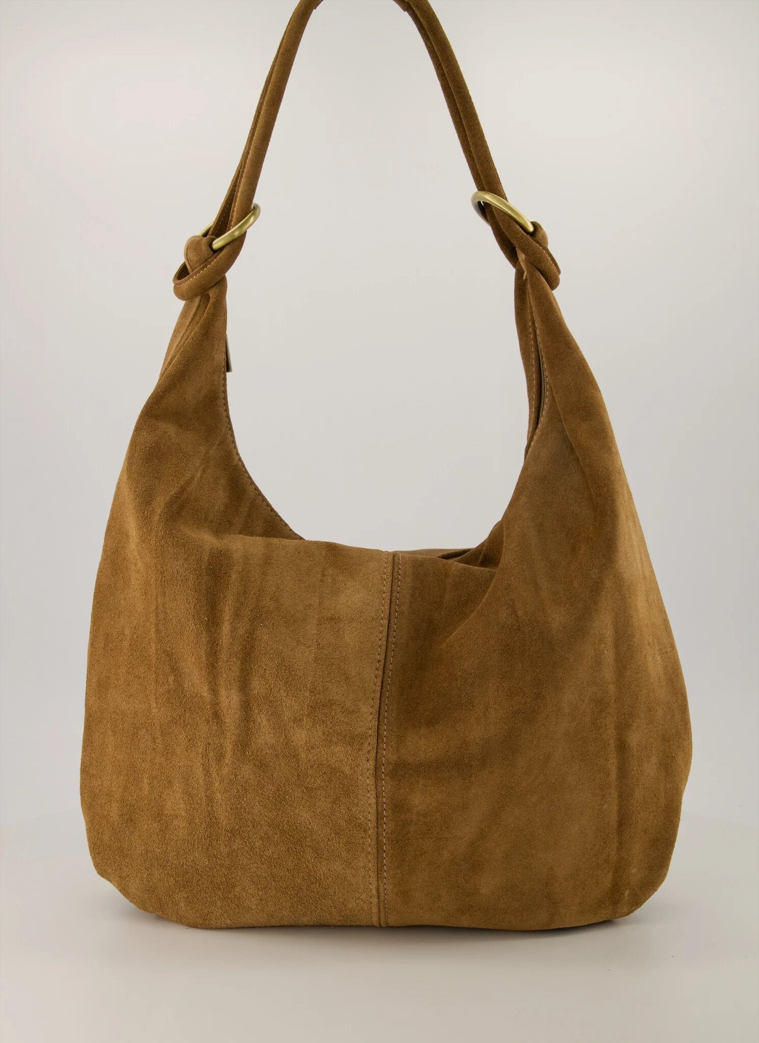 100% leren shoudertas vervaardigd van suede. De tas heeft een groot vak met aan de binnenzijde een afsluitbaar steekvakje. De schoudertas is ook te dragen als handtas. Verkrijgbaar is diverse kleuren.